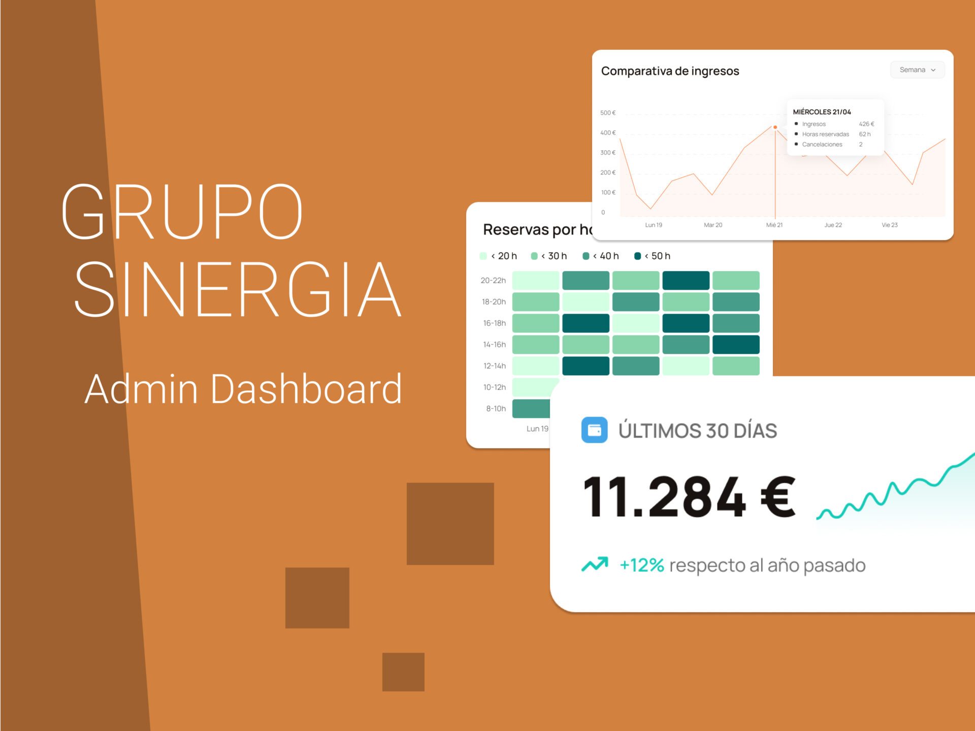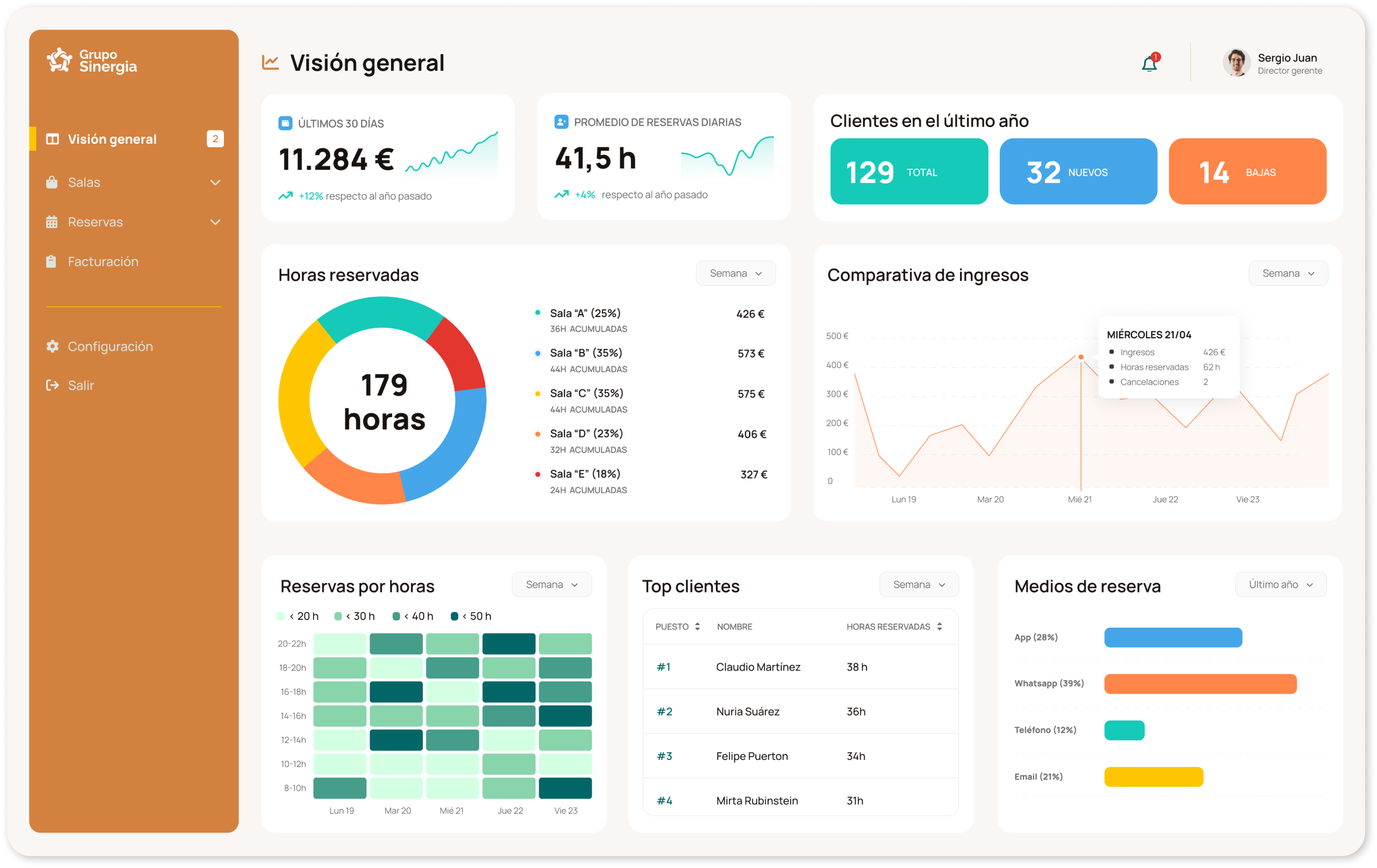 La empresa Grupo Sinergia, coworking especializado en el alquiler de despachos para profesionales, ha solicitado la la conceptualización y el diseño de un apartado para que el personal directivo disponga de una visión general de la marcha del negocio.